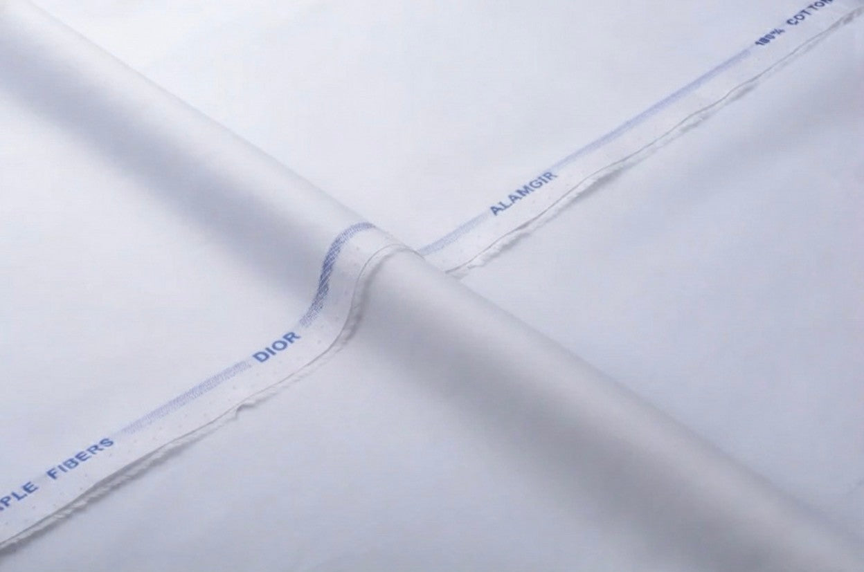 Experience the refined touch of Dior Cotton, crafted from 100% Egyptian cotton with a super fine long staple weave. This premium fabric offers a naturally crisp finish and breathable comfort — perfect for tailored shalwar kameez or formal Eastern wear. Designed for the modern gentleman who values both style and substance.